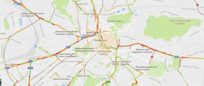Згідно з даними Google Maps, станом на 08:20 затори у Львові є на вулицях: