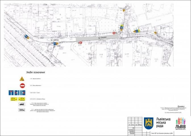 У місцях проведення робіт встановлять необхідні дорожні знаки, інформаційні панно та щити огородження.