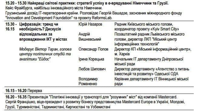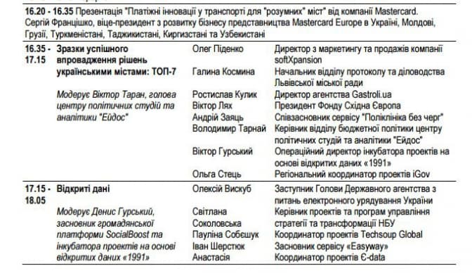 Захід передбачає дискусії та лекції відомих спікерів та експертів, які розглянуть основні зміни впродовж останнього року у сфері електронного врядування, спрогнозують його розвиток в Україні та виокремлять основні пріоритети та цілі на 2017 рік. У панельних дискусіях візьмуть участь представники державної та місцевої влади, фондів та громадських організацій, іноземні та українські експерти, відомі стартапери тощо.