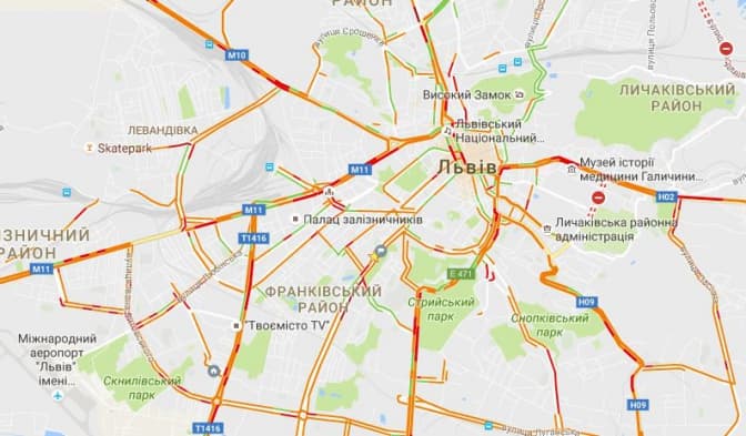 Згідно з даними Google Maps, станом на 8.20 2-го грудня затори у Львові є на вулицях: