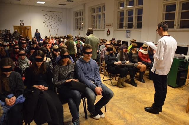 «Усім глядачам, коли вони приходять, зав’язують очі, із закритими очима ведуть в зал і садять на їхнє місце. Коли всі прийдуть, розпочнеться вистава – своєрідні читання із музичним супроводом, у яких візьмуть участь багато акторів», – розповідав раніше Tvoemisto.tv один із організаторів Андрій Каспшишак.