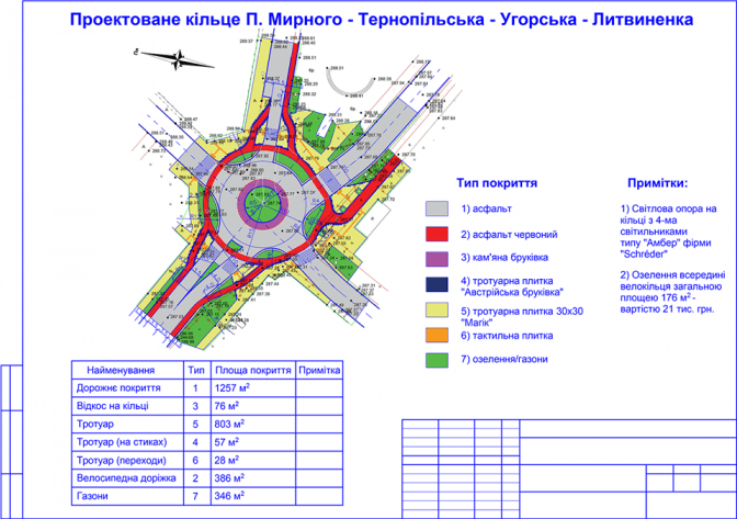 Як зазначив директор «Інституту просторового розвитку» Олег Шмід, перехрестя вулиць Панаса Мирного, Тернопільської, Угорської та Литвиненка буде «голландським», тобто на ньому облаштують кільце для автомобілів.