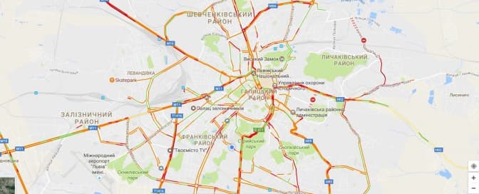 Згідно з даними Google Maps, станом на 8:25 затори у Львові є на вулицях: