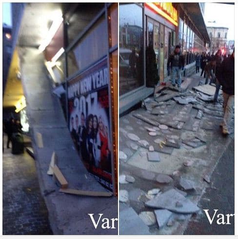 Фото з місця опублікували на сторінці спільноти «Варта 1» у Facebook. На фото видно, що впав дашок над входом у готель, розбиті шматки лежать на тротуарі.