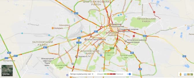 Згідно з даними Google Maps, станом на 8:40 затори у Львові є на вулицях: