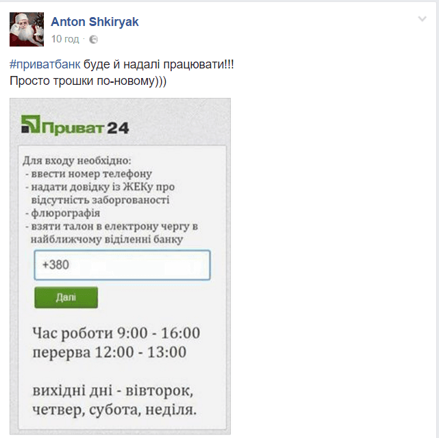 Про особливості роботи держустанов та можливе зараження ними "Приватбанку" декілька наступних фото.