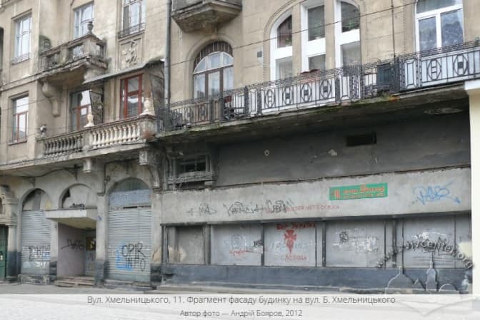 Додамо, у будинку за сучасною адресою вулиця Богдана Хмельницького, 11 діяв кінотеатр зі зміною назв і власників: «Сфінкс» (1913–1918, 1926–1933), «Мева» (1933, 1941–1944), «Адрія» (1933–1939), «Кінотеатр ім. 17 Вересня» (1946–1949). З 1949 р. він називався «Кінотеатр ім. Б. Хмельницького». У 1990-х рр. основу репертуару складали стрічки індійського виробництва. У 2007 р. Львівська міська рада ухвалила рішення про ліквідацію Державного комунального підприємства «Кінотеатр ім. Б. Хмельницького».