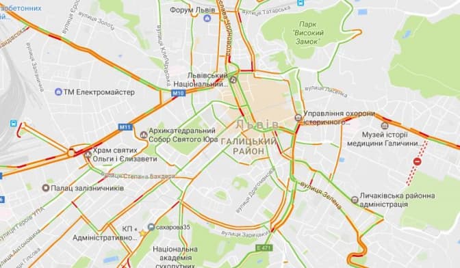 Згідно з даними Google Maps, станом на 8.20 5-го січня затори у Львові є на вулицях: