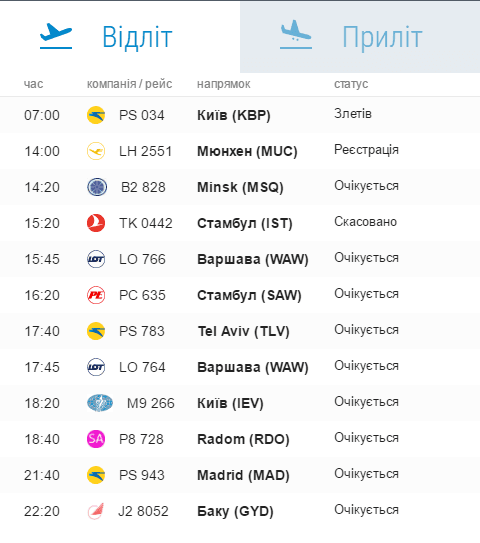 Згідно з розкладом на сайті Львівського аеропорту, скасовано рейс до Стамбула, який був запланований на 15.20 год. Інші авіарейси очікуються за графіком без затримки.