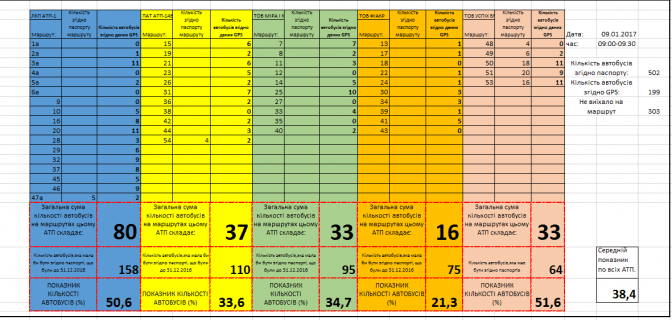За інформацією міськради, станом на 9:30 у місті курсувало 278 автобусів. Різницю в цифрах пояснюють тим, що підприємство АТП № 1 працює у програмі «МікроГіс». «Ця інформація інколи не сприймається програмою СофтСерв, тому дані зі системи он-лайн GPS не завжди відповідають дійсності, інколи у цій системі є збій», - пояснили перевізники.