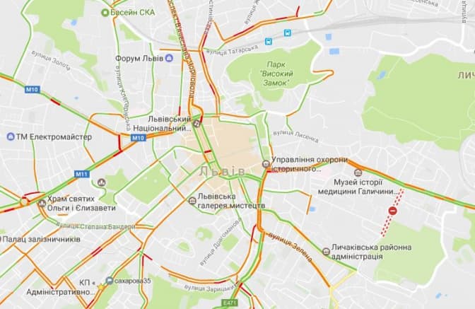 Згідно з даними Google Maps, станом на 8.15 10-го січня затори у Львові є на вулицях: