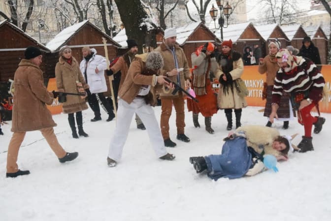 Супроводжувало подію справжнє святкове дійство: два театральні колективи «водили козу», що відтворило українські традиції відзначення Василя й Маланки.
