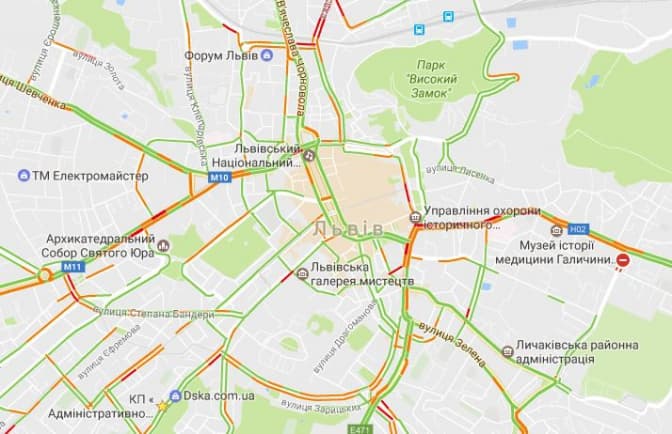 Згідно з даними Google Maps, станом на 8.20 20-го січня затори у Львові є на вулицях: