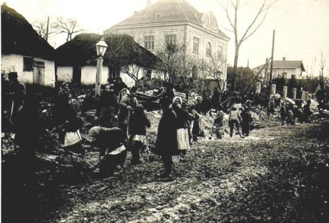 Селяни при виконанні робіт на дорозі