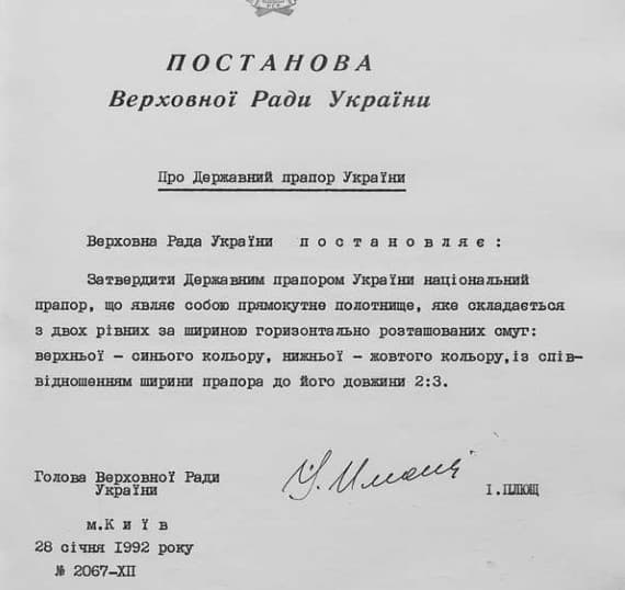 Із проголошенням незалежності України віддали належне синьо-жовтому знамену й визначили його національним символом козацтва впродовж багатьох століть. Український народ не міг відкинути історичну традицію створення своєї держави саме під цим знаменом. А 28 січня 1992 року Верховна Рада України затвердила державним прапором України синьо-жовтий стяг.