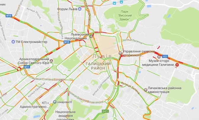 Згідно з даними Google Maps, станом на 8.20 31-го січня затори у Львові є на вулицях: