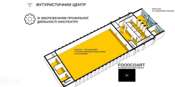 Згідно з презентацією, наданою Tvoemisto.tv Юрієм Гнатковським, концепція такого футуристичного центру передбачає збереження профільної діяльності кінотеатру. Зокрема, на його базі планують облаштувати кінозал-трансформер з інтерактивними мобільними інсталяціями, сферичний навчальний кінозал зі змінною експозицією, зелений дах та планетарій 3D (детальніше – у презентації нижче).