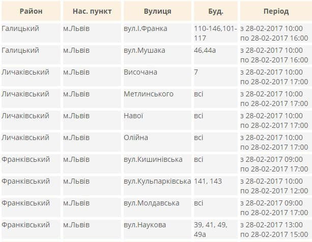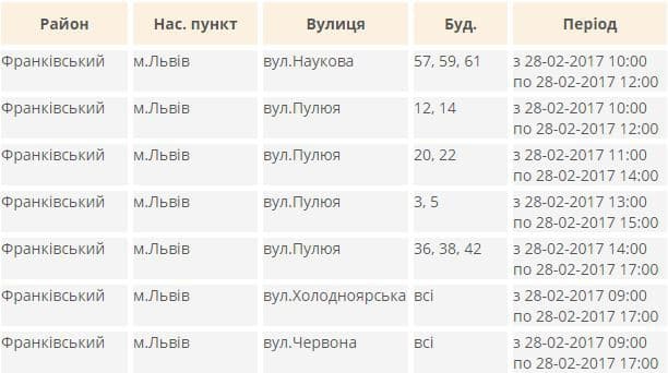 Електропостачання частково припинять на таких вулицях: