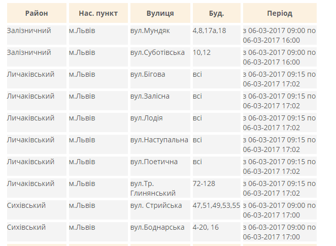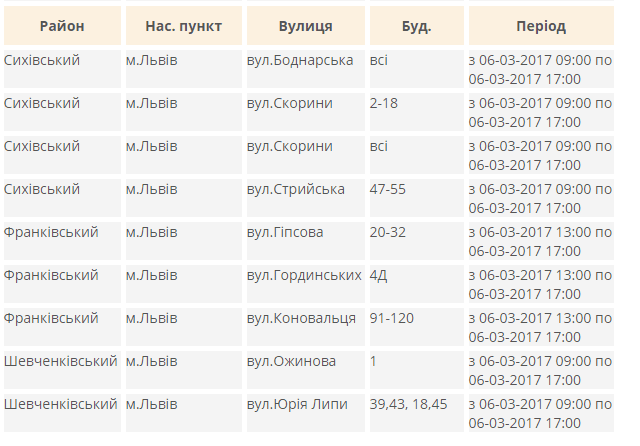 У зв'язку із плановими ремонтами завтра електроенергії тимчасово може не бути в кількох районах Львова.