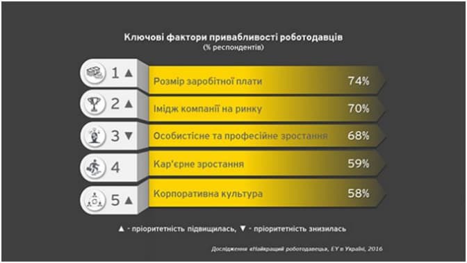Ключовими факторами при виборі компанії, окрім зарплати, стали репутація працедавця, можливості професійного та кар’єрного росту, а також корпоративна культура. За результатами дослідження SoftServe опинився у переліку найбільш бажаних працедавців для кандидатів з досвідом роботи. У цьому ж переліку респонденти назвали Google, EPAM, «Київстар», Luxoft, Microsoft, Nestle, Procter & Gamble та Сiklum, а також аудиторсько-консалтингову компанію з «Великої четвірки».
