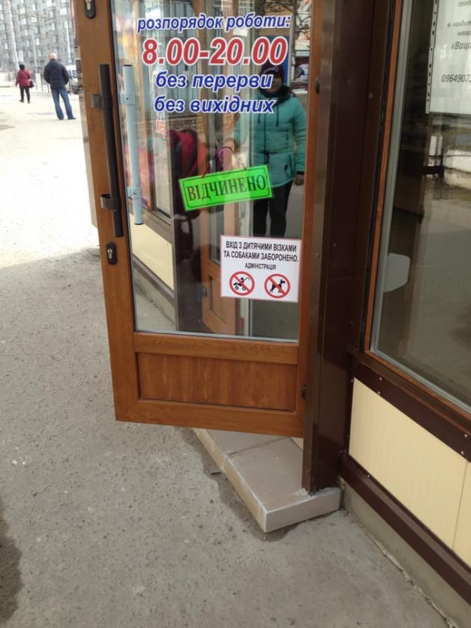 «Я живу в Залізничному районі на вулиці Патона. У нас є такий магазинчик «Вацак», є такий же і на вулиці Любінській. У них на дверях такі наклейки (фото нижче, – ред.) Вони прирівняли дітей до собак! Я розумію, що, можливо, там мало місця. Тобто якщо дитинка спить у візочку, то мама повинна її лишити на вулиці? Або взагалі не заходити туди, коли вона йде мимо і вирішила щось солоденьке придбати?! Взагалі цікаво, чи правомірна така наліпка», – звернулася Надія Нікольська до Tvoemisto.tv.
