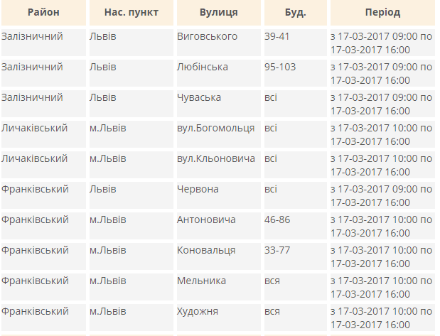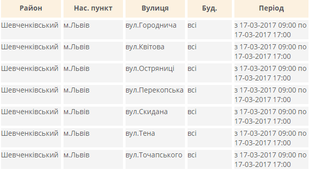 Завтра, 17-го березня, Львівобленерго продовжує планове відключення електроенергії. Tvoemisto.tv пропонує перелік вулиць.