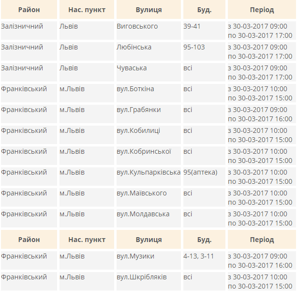 Завтра, 30-го березня, світло вимикатимуть на вулицях Галицького та Залізничного районів.