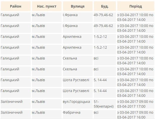 Де у Львові завтра не буде світла. Перелік адрес