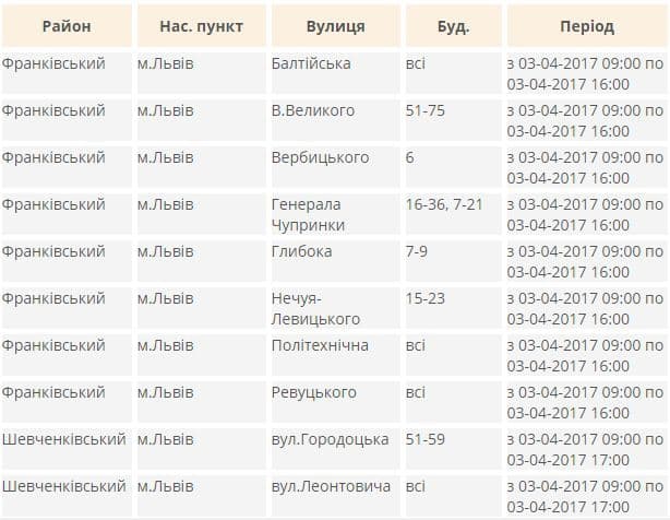 ПАТ «Львівобленерго» продовжить планові ремонтні роботи електрообладнання. Тож завтра, 3-го квітня, частина будинків у місті залишиться без електроенергії. Tvoemisto.tv пропонує їхній перелік.