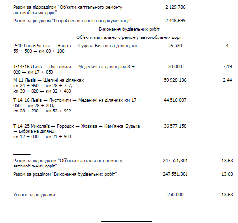 Дороги, які підлягають ремонту: М-11 Львів – Шегині, Р-40 Рава-Руська – Яворів – Судова Вишня, Т-14-16 Львів – Пустомити – Мединичі, Т-14-25 Миколаїв – Городок – Жовква – Кам’янка-Бузька – Бібрка.