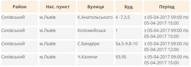 Де у Львові завтра не буде світла. Перелік адрес