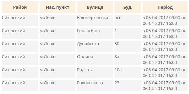 Де у Львові завтра не буде світла. Перелік адрес