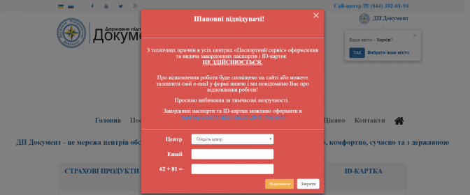 Про те, що сервіс не працюватиме, повідомляють на офіційному сайті центру.
