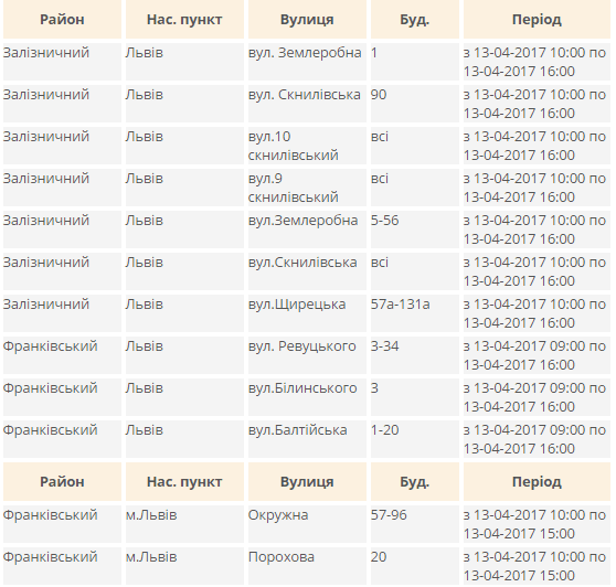 Де у Львові завтра не буде світла. Перелік адрес