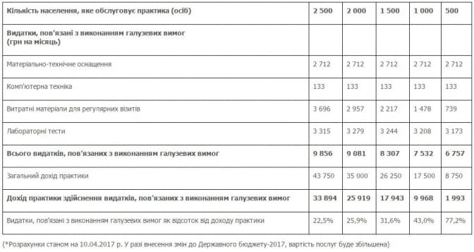 За інформацією заступника міністра охорони здоров’я України Павла Ковтонюка, розрахунки свідчать, що при поточному мінімальному фінансуванні первинної медичної допомоги, медична практика, що обслуговує 2000 пацієнтів (лікар, медсестра), буде отримувати середній дохід в обсязі 35 000 грн на місяць.