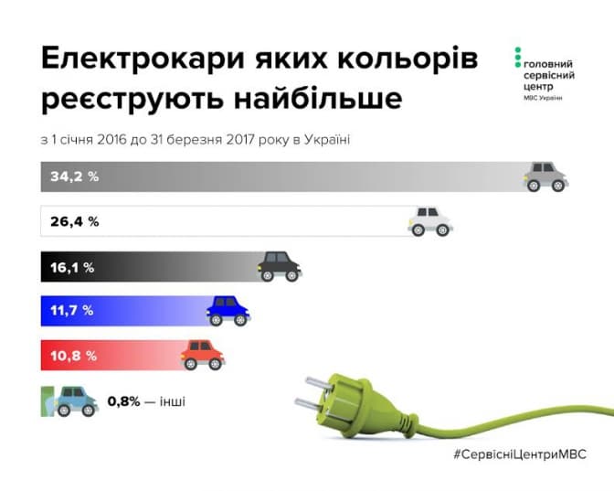 "Найбільший попит на електромобілі за даними сервісних центрів МВС прослідковується у м. Києві, Одеській та Харківській областях, слідом йдуть Дніпровська, Львівська, Київська та Запорізька області. У першому кварталі 2017 року показники зросли майже вдвічі – 620 зареєстрованих авто, у порівнянні з першим кварталом 2016 року – 294 зареєстрованих авто. Окрім цього, можемо побачити різний попит на авто залежно від місяця, вподобання та доступності конкретних марок на українському ринку" – повідомляє керівник Головного сервісного центру МВС Владислав Криклій.