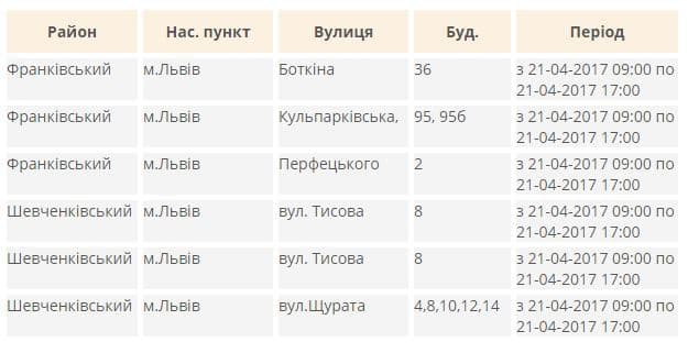 Де у Львові завтра не буде світла. Перелік адрес