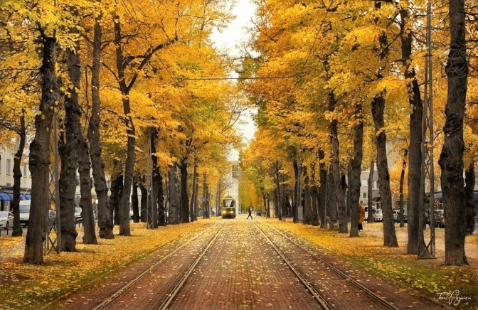 Трамвайна колія в місті Гельсінкі (Фінляндія)