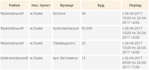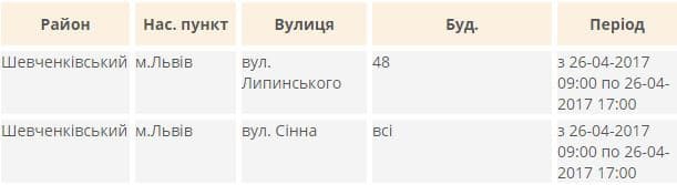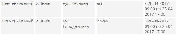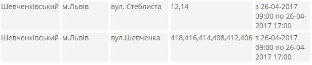 Завтра, 26-го квітня, світло вимикатимуть в Шевченківському та Франківському районах міста.
