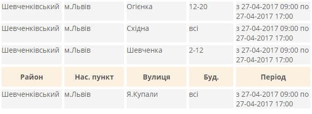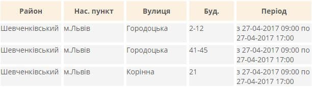 Де у Львові завтра не буде світла. Перелік адрес