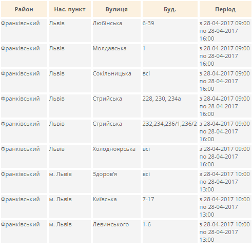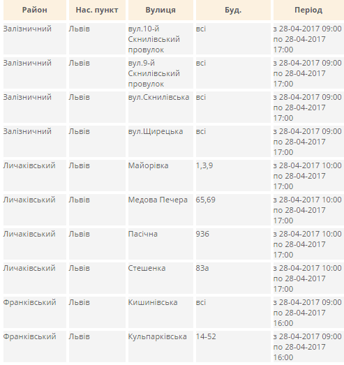 Де у Львові завтра не буде світла. Перелік адрес