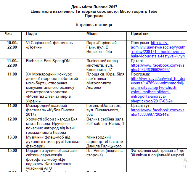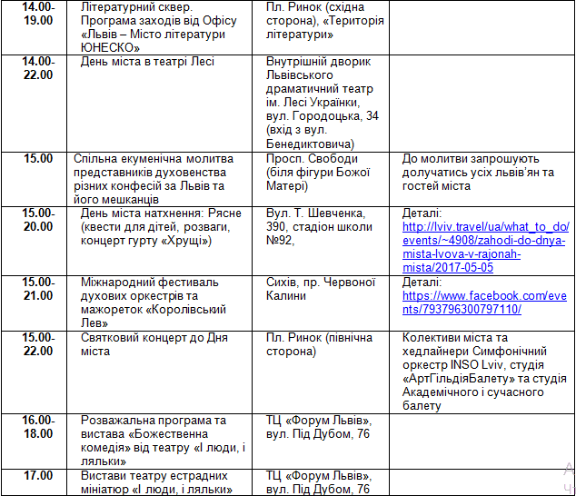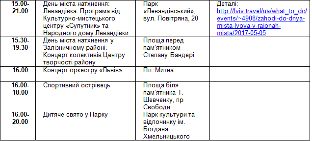 У п’ятницю, 5-го травня, о 12.00 у великій сесійній залі (каб. 202), пл. Ринок, 1 відбудуться урочисті збори з нагоди Дня міста Львова, а також вручення почесних нагород від імені громади міста Львова;