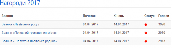 Також містяни могли проголосувати за одного з кандидатів у номінаціях «Почесний громадянин міста» та «Шляхетна львівська родина».
