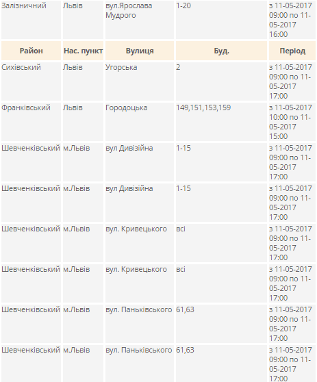 У зв'язку із плановими ремонтами завтра електроенергії тимчасово може не бути в кількох районах Львова.