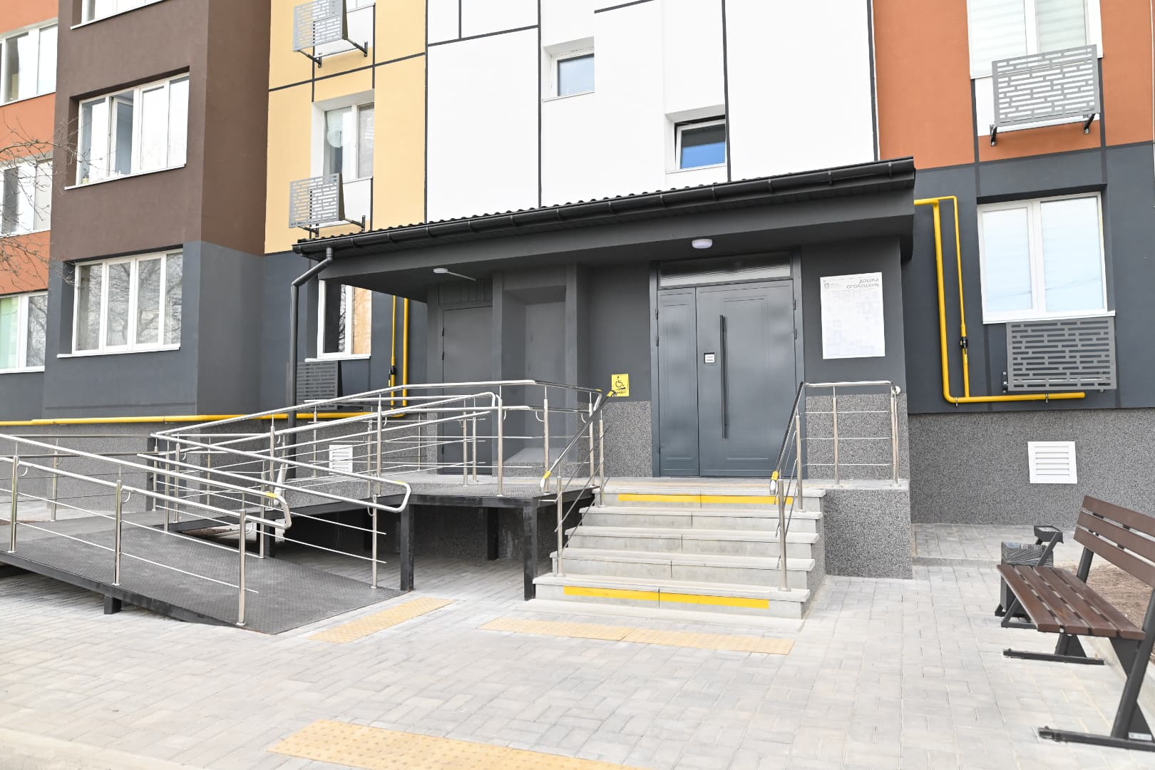 Об’єктами відновлення стали дві дев’ятиповерхівки, кожна з яких розрахована на 72 квартири. Будівельники не обмежилися лише латанням пошкоджених конструкцій — підхід до реновації був комплексним. Фахівці виконували повний спектр робіт: від утеплення та естетичного оздоблення фасадів до капітального ремонту місць загального користування.