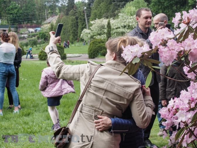 Двері ботанічного саду Львівського національного університету імені Франка відкрились 14 травня лише на кілька годин, але цим, як і незвичною для цього травня теплою й подекуди сонячною погодою, скористалися сотні львів’ян. Вони нюхали та фотографували квіти, дозволяли собі сидіти на газонах і спускались до озера. Там непогано почуваються переселені чотири дні тому з Погулянки товстолобики. Фотографуватись риби не схотіли, але за бажання їхні силуети можна розгледіти під поверхнею води.