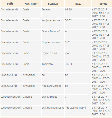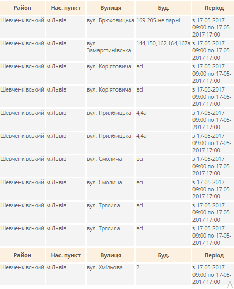 Завтра, 17-го травня, ПАТ «Львівобленерго» продовжить планові ремонтні роботи електрообладнання. Тож частина вулиць у місті залишиться без електроенергії. Tvoemisto.tv пропонує їхній перелік.