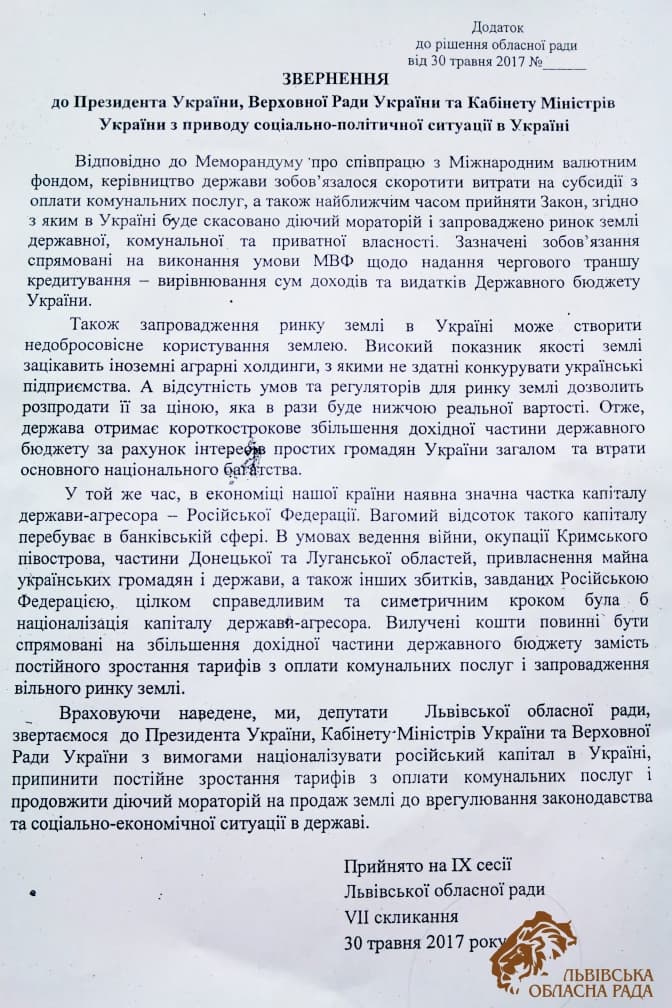 На початку сесії 30-го травня перед обласною радою активісти «Сокола», нацкорпусу «Азов», Легіону «Cвобода», ОУН і «Правого сектору» пікетували вхід до облради. Учасники мітингу обурюються зволіканням президента з підписанням закону про амністію для бійців АТО.