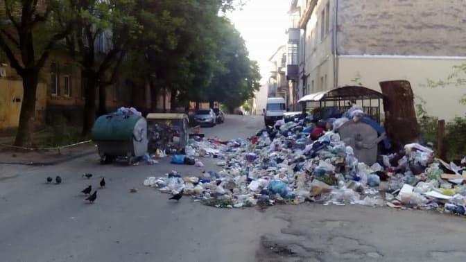 Сьогодні о 7:00 жителі міста виявили, що проїзд вулицею Шараневича неможливий через купу сміття, яка накопичилась біля сміттєвих баків.