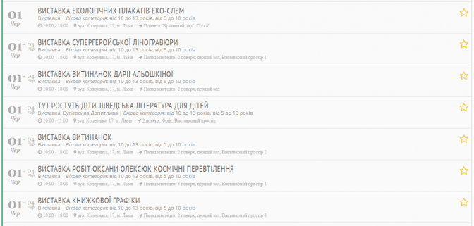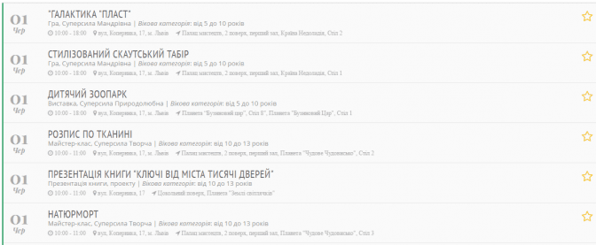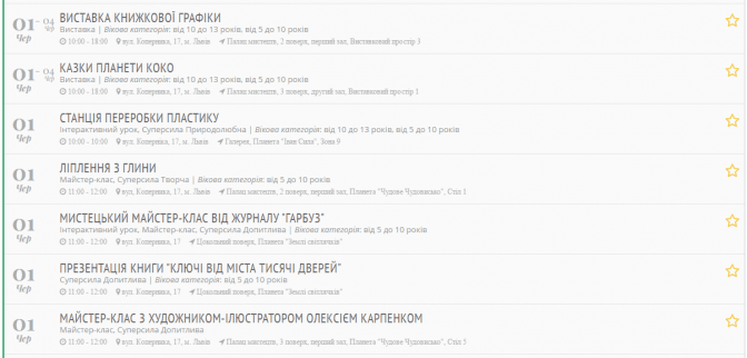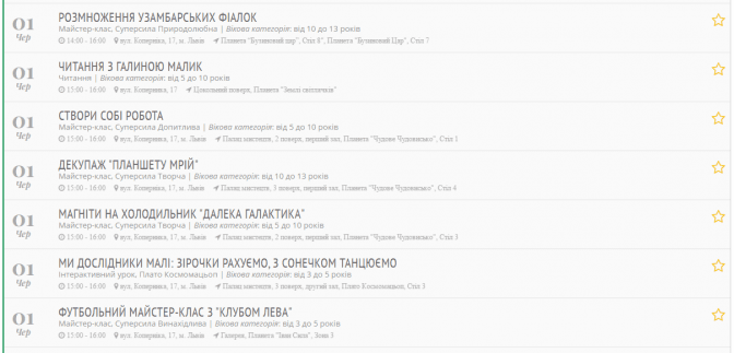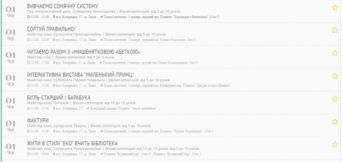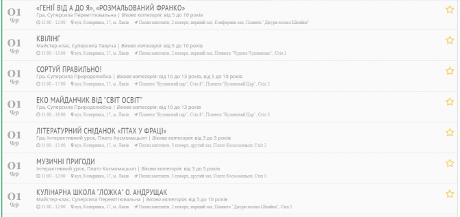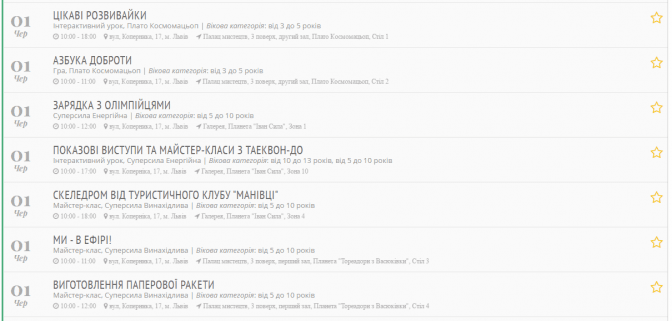 Заходи діляться за віковою категорією: